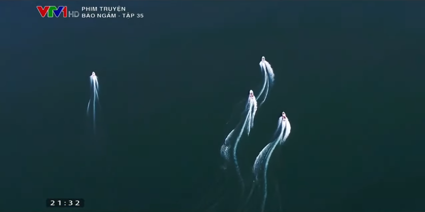 Cảnh rượt đuổi bằng cano của các chiến sĩ trên hồ Thác Bà (Yên Bái) vừa nghẹt thở, vừa hoành tráng với những góc quay từ trên cao vô cùng mãn nhãn khiến khán giả không khỏi trầm trồ.