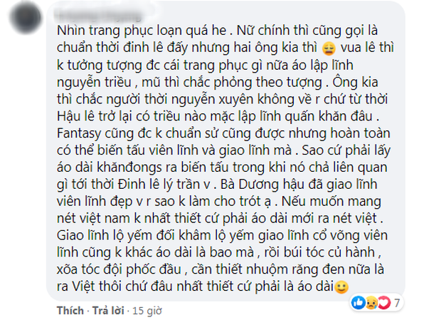 Trong đó, phần hình ảnh vẫn là đề tài bàn tán chính của khán giả, đặc biệt là cộng đồng những người yêu cổ phong. Từ đó, vụ việc xuất hiện hai luồng ý kiến đối lập nhau. Một bên có xu hướng lên án gay gắt, cho rằng trang phục dính phải nhiều sai lầm nghiêm trọng. Họ nhận định dã sử nhưng cũng phải có sự đối chiếu rõ ràng với lịch sử. Quần áo cũng có nhiều chi tiết không đúng, kích thước mũ mão cũng kỳ quặc, nhìn chung mong muốn ekip điều chỉnh.
