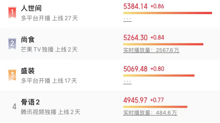 Xét về mức độ phổ biến toàn diện của phim truyền hình dài tập và phim truyền hình trực tuyến tại Trung Quốc, Thượng thực chỉ đứng sau phim Đời người (人世间) do Đằng Tấn và iQiyi sản xuất.