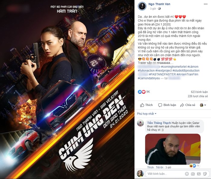 Sáng 14/1, Ngô Thanh Vân khiến khán giả bất ngờ khi đăng tải poster của bộ phim điện ảnh mới mang tên Chim ưng đen. Đây là dự án được nữ diễn viên giấu kín đến tận sát ngày công chiếu. Theo đó, Ngô Thanh Vân chọn phát hành phim ngay ngày giao thừa xuân Canh Tý 2020 ngày 24/1, tức là chỉ 10 ngày kể từ khi công bố dự án.