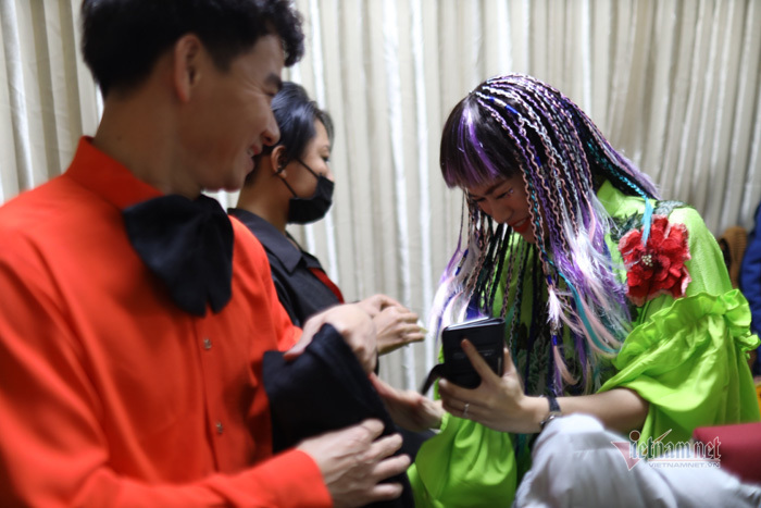 Trước đó phóng viên VietNamNet bắt gặp khoảnh khắc nghệ sĩ Vân Dung nhẩm thoại ở cánh gà sân khấu. Nói về buổi quay không khán giả, Vân Dung chia sẻ: "Công việc thì vẫn phải làm, chỉ tiếc là không được nghe những tràng vỗ tay và những tiếng cười của khán giả thân yêu".