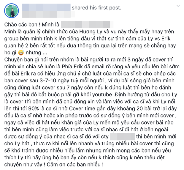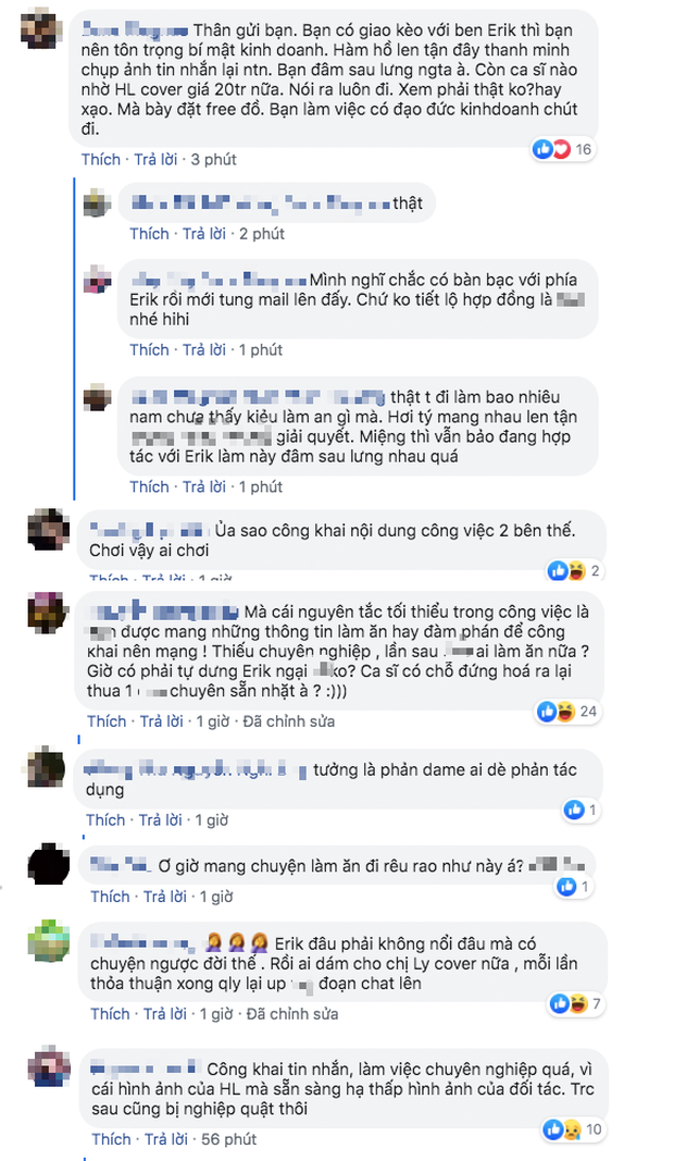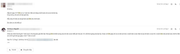 Quản lý Hương Ly trực tiếp đáp trả cộng đồng mạng, tung email và tin nhắn trao đổi với Erik để chứng minh việc cover sau 3 ngày là đã có thoả thuận từ trước với Erik
