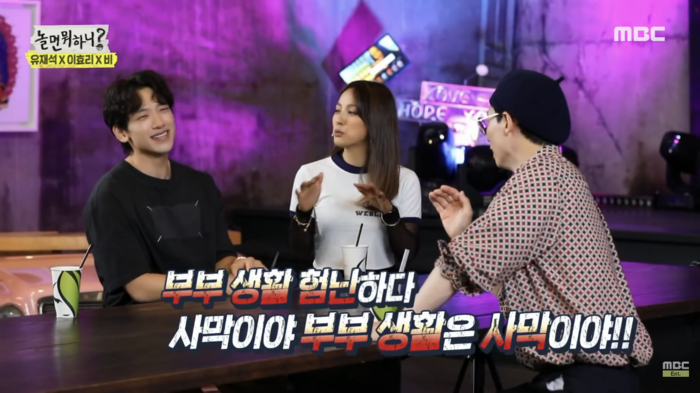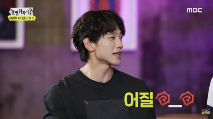 Ông xã Kim Tae Hee nói thêm rằng anh và Lee Hyori đáng ra có thể đã tiến lại gần nhau hơn nhưng không thể vì lịch trình dày đặc. Lee Hyori trêu chọc Yoo Jae Suk: “Thậm chí bọn em có thể đã hẹn hò”. Bi Rain nói: “Em biết. Nhưng bọn em không trao đổi thông tin liên lạc cho nhau”. Lee Hyori tiếp tục: “Em và cậu ấy đã có thời gian gặp gỡ riêng tư. Bọn em đã gặp nhau nhiều lần vì công việc, nhưng không có thời gian cho những chuyện khác”.
