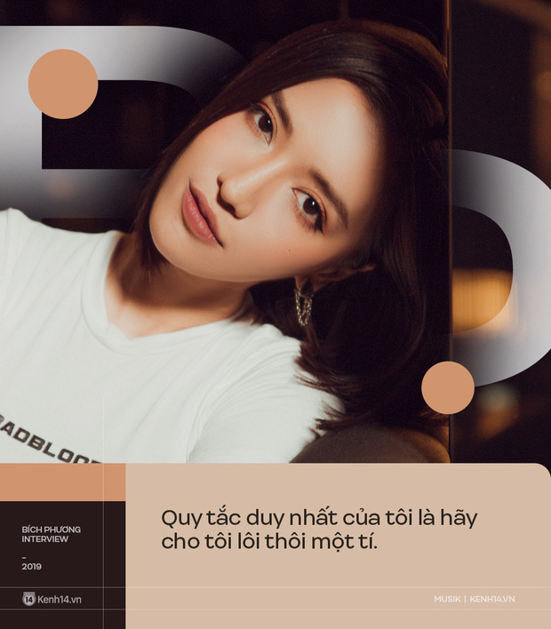 Bài phỏng vấn dưới đây có thể sẽ chẳng giống như những gì bạn tưởng tượng, đặc biệt nếu bạn đang mong muốn biết thứ gì đó sâu sắc về Bích Phương. Bích Phương khẳng định "Phương đơn giản lắm, đầu mình không có khả năng phân tích mấy thứ phức tạp đâu!". Nhưng nếu bạn muốn biết cảm giác ngồi "đu đưa" luyên thuyên cùng Bích Phương sẽ thế nào, thì đây, mời bạn.