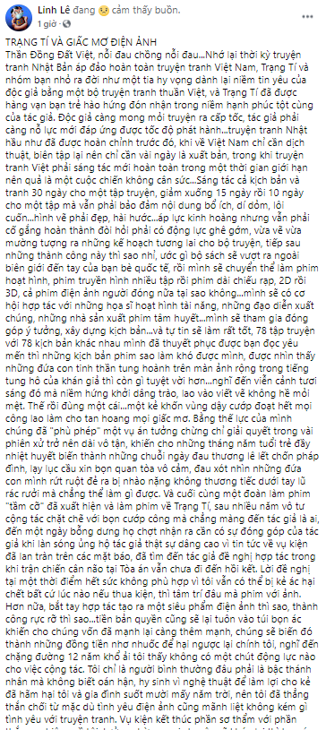 Trong lúc dư luận chưa kịp lắng xuống sau những lùm xùm về bản quyền của bộ phim Trạng Tí thì chia sẻ mới đây của họa sỹ Lê Linh, tác giả bộ truyện nguyên tác Thần Đồng Đất Việt, một lần nữa thu hút sự quan tâm của công chúng.