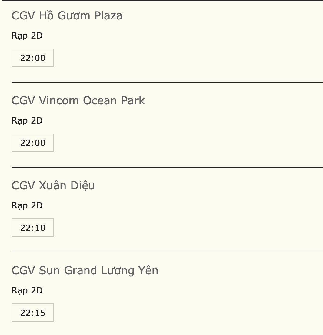 Trong khi đó, Nhà Ba Tôi Một Phòng – dự án điện ảnh đầu tay do Trường Giang sản xuất – lại rơi vào thế bất lợi. Theo ghi nhận, phim chủ yếu được xếp vào các khung giờ sáng sớm hoặc đầu giờ chiều, vốn là thời điểm khá kén khán giả, nhất là trong những ngày làm việc. Không chỉ vậy, mỗi rạp chỉ bố trí khoảng 1–2 suất chiếu mỗi ngày, khiến cơ hội tiếp cận người xem càng bị thu hẹp, đồng thời nới rộng thêm khoảng cách với đối thủ dẫn đầu.