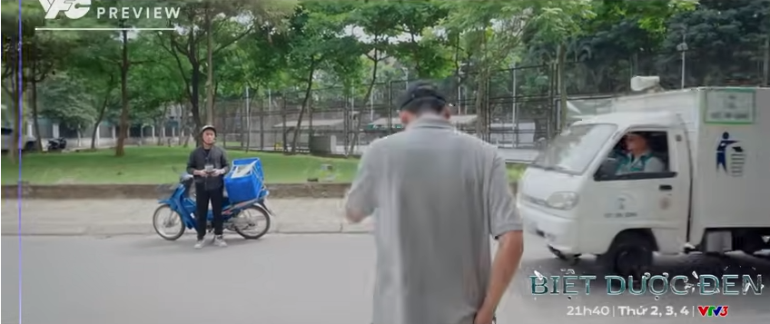 Tuy nhiên, khi đối tượng này đang sang đường tới chỗ shipper thì một xe gom rác đi qua, nhân viên xe rác nói: 'Chưa đến giờ gom rác đâu', đầu thời ra dấu hiệu. Sau đó đối tượng này ngập ngừng, không đi về phía shipper.