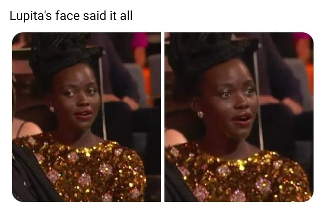Ngoài ra là biểu cảm gượng gạo của nữ diễn viên Lupita Nyong'o - người Mỹ gốc Mexico. Nữ diễn viên ngồi ngay phía sau vợ chồng Will Smith. Cả quá trình từ lúc Will Smith lên đánh Chris Rock cho tới khi nam tài tử ngồi xuống phía khán đài, nữ diễn viên đều có biểu cảm gượng gạo.