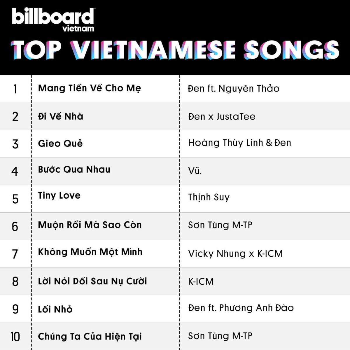Sau một thời gian dài chờ đợi, bảng xếp hạng Billboard Vietnam Top Vietnamese Songs cũng đã chính thức ra mắt khán giả. Đây cũng chính là bảng xếp hạng được nhiều người hâm mộ trong nước mong chờ nhất, là cuộc chơi dành riêng cho nghệ sĩ Việt.