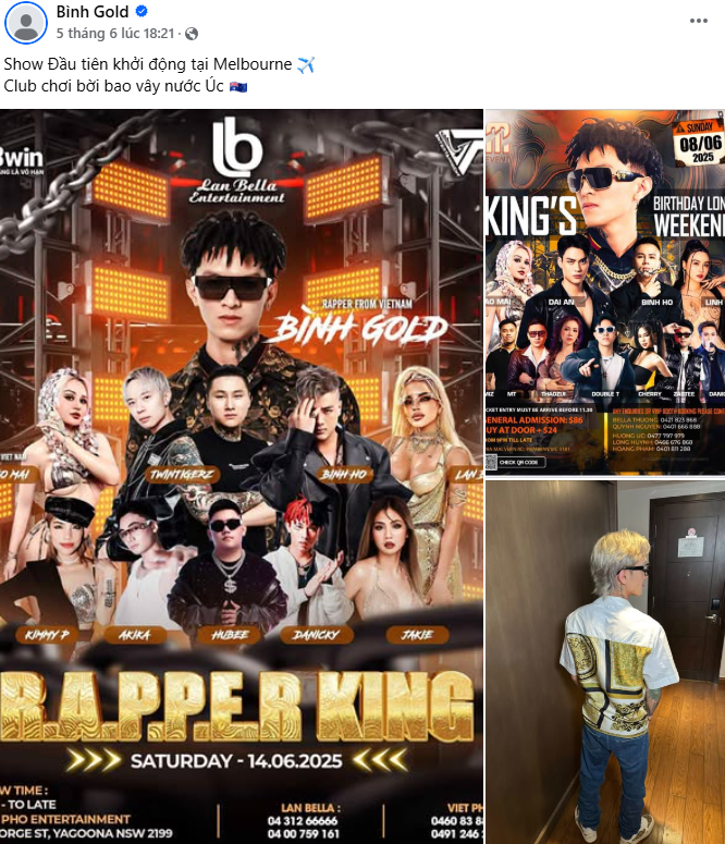 Ngay sau màn đáp trả của Bình Gold, mạng xã hội tiếp tục sục sôi. Tuy nhiên, tình hình cụ thể về show thì cả phía Bình Gold và tài khoản đăng status tố đều không thông tin gì thêm. Theo thông tin được công khai ở tài khoản tố Bình Gold, người này thường tổ chức các show diễn âm nhạc ở Melbourne, Úc. Trang cá nhân dẫn thẳng đến fanpage công ty, công khai lịch show mà đơn vị này tổ chức. Rất nhiều sao Việt nổi tiếng từng được đơn vị mời biểu diễn, điển hình như Andree, Trung Quân, Bùi Anh Tuấn, Quang Hùng MasterD, Thai VG, K-ICM,... Trước đó vào ngày 5/6, Bình Gold đăng poster về show diễn ở Melbourne, Úc, dự kiến diễn ra ngày 14/6.