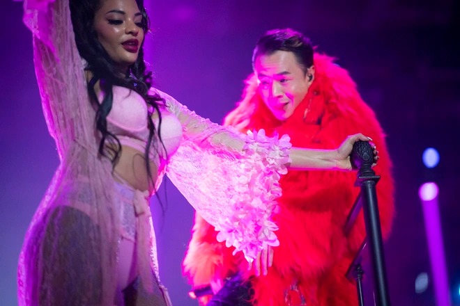 Hầu hết tiết mục trong live show đều có sự hỗ trợ của những người mẫu nước ngoài nóng bỏng. Ở các góc khán đài, một số vũ công thực hiện phần múa cột.