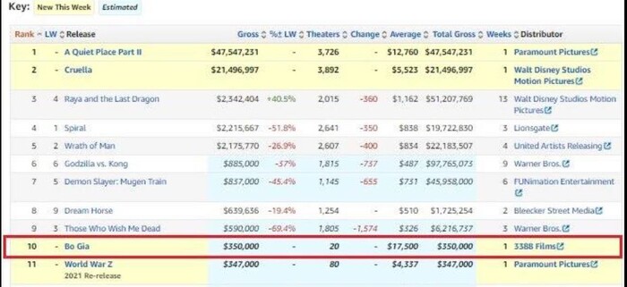 03/06/2021 21:39'Bố già' đại thắng tại Mỹ: Lọt top 10 doanh thu, tỷ suất bán vé vượt mặt bom tấn Hollywood