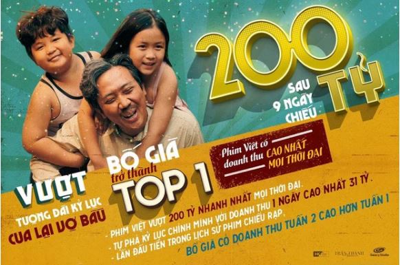 Chiều ngày 14/3, nhà sản xuất Bố Già hân hoan thông báo tin từng: bộ phim của Trấn Thành đã công phá cột mốc 200 tỷ chỉ sau 9 ngày chiếu, trở thành phim điện ảnh Việt có doanh thu nội địa cao nhất từ trước đến nay. Thành công và tốc độ của Bố Già là một trường hợp vô tiền khoáng hậu tại phòng vé Việt, thể hiện không chỉ chất lượng của tác phẩm mà còn là tiềm năng của điện ảnh nước nhà. Bộ phim giờ đây không chỉ trở thành "cục cưng" của nền công nghiệp phim nội địa, mà còn là tấm gương, một trường hợp sẽ được nhắc đến mãi về sau nhờ những kỷ lục mà nó tự đặt, tự công phá.