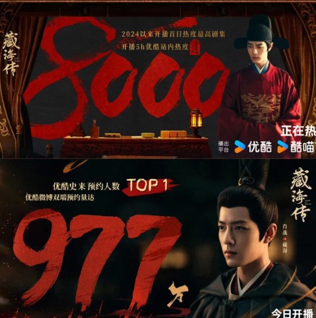 Vào chiều ngày 18/5, phim cổ trang Tàng Hải Truyện do đạo diễn Trịnh Hiểu Long chỉ đạo, với sự tham gia của Tiêu Chiến, Trương Tịnh Nghi, Châu Kỳ, Hoàng Giác chính thức lên sóng khung giờ vàng trên CCTV8 và nền tảng Youku, tạo nên làn sóng bùng nổ cả trên truyền hình lẫn trực tuyến.