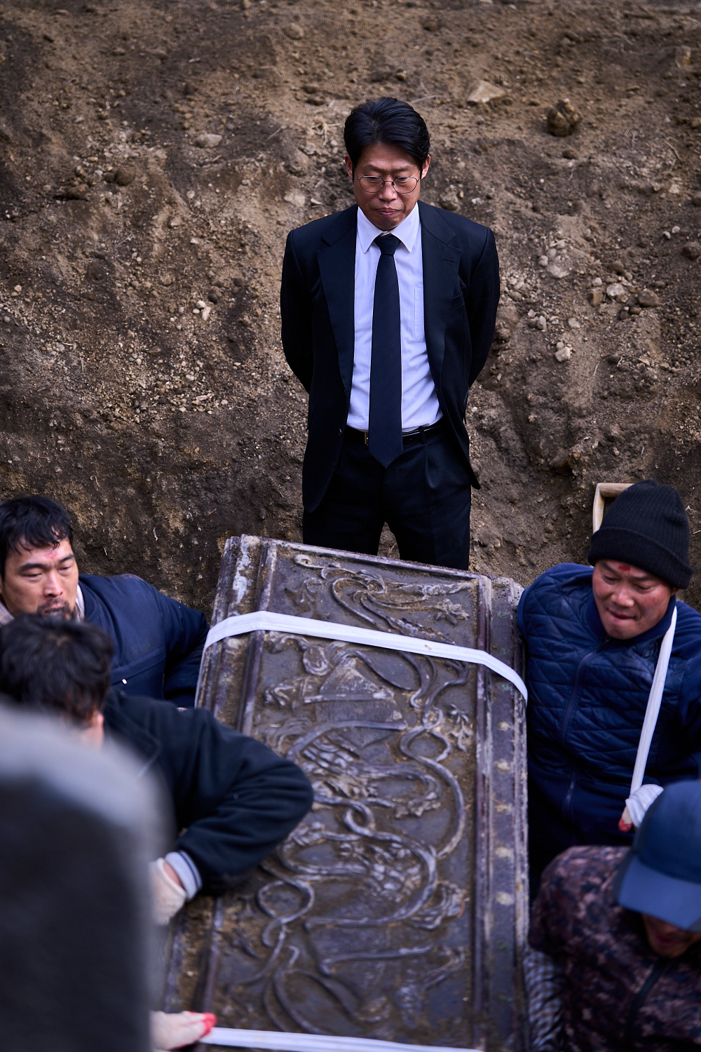 Ngoài biển số xe của Hwa Rim thì biển số xe của Young Geun (Yoo Hae Jin) cũng được quay cận với dãy số 49 파 0815. Trong đó 49 ám chỉ nghi lễ được tổ chức 49 ngày của một người qua đời, điều này đã quá quen thuộc với văn hóa tín ngưỡng của người châu Á và cũng gần với công việc của một người chuyên mai táng như Young Geun. 파 trong cụm 파묘 (hay Pamyo cũng là tên gọi khác của Exhuma tại Hàn Quốc) có nghĩa là đào/khai quật, ý chỉ nội dung phim về việc quật mộ. Con số 0815 lại đề cập đến Ngày Giải phóng Dân tộc Hàn Quốc vào ngày 15/8.