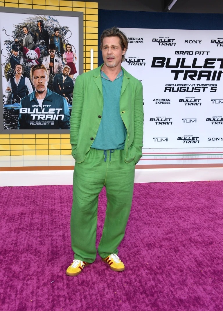 Ngày 2/8, Brad Pitt tham gia buổi ra mắt bộ phim "Bullet train - Sát thủ đối đầu" ở Los Angeles, Mỹ. Tại buổi ra mắt phim, nam diễn viên diện bộ trang phục vest màu xanh ấn tượng. Nam diễn viên phối cùng áo polo và giày màu vàng neon. Tuy gương mặt đã có dấu hiệu tuổi tác, Brad Pitt biết cách níu kéo tuổi trẻ bằng trang phục hợp thời trang.