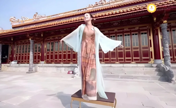 Trong video được chia sẻ trên mạng xã hội, cô mặc áo dài cách tân, thực hiện các động tác múa, gõ ly, thậm chí trèo lên bàn, gây phản ứng trái chiều từ dư luận. Nhiều khán giả cho rằng việc biểu diễn tại sân chầu điện Thái Hòa – biểu tượng quyền lực triều Nguyễn và di tích quốc gia đặc biệt – là không phù hợp.