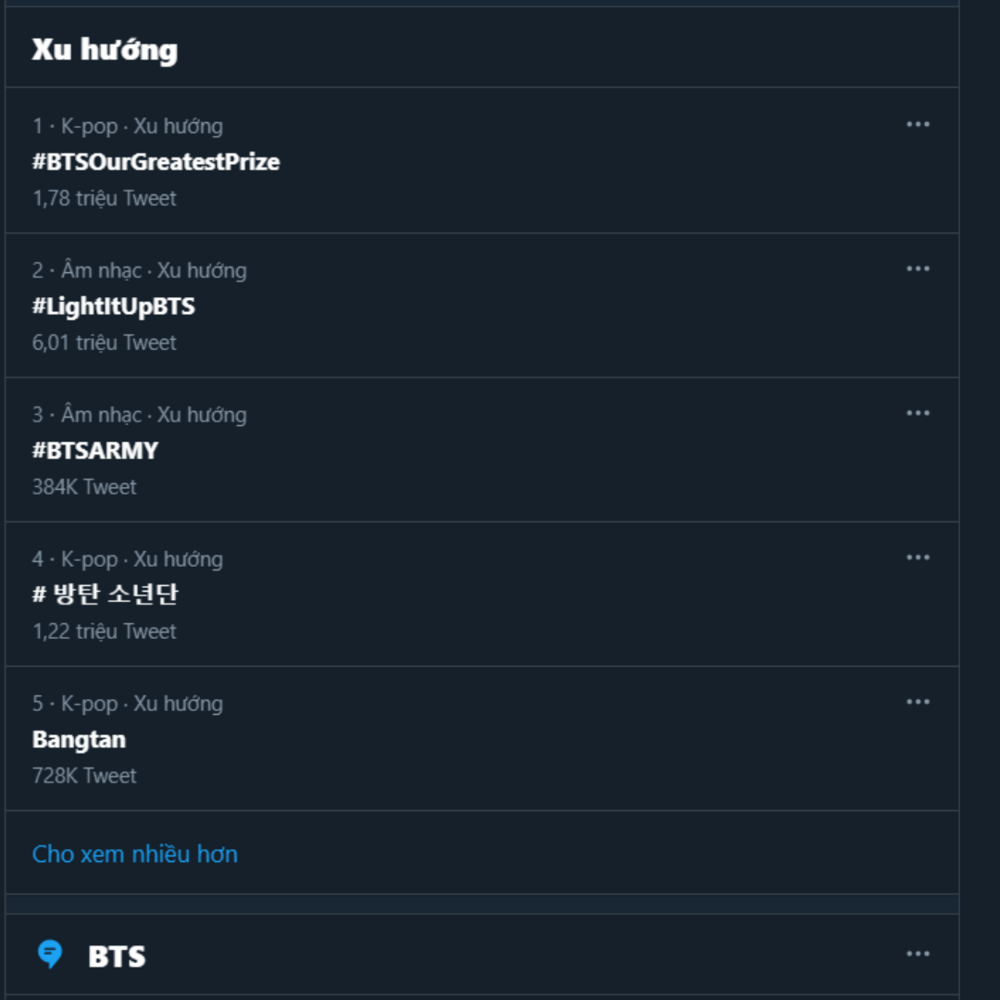 Việc trượt đề cử đã dẫn đến việc các hashtag #BTSOurGreatestPrize và #LightItUpBTS trên khắp các Twitter - thể hiện sự tức giận khi BTS thua cuộc: