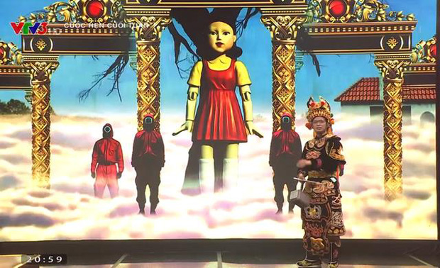 Trước đây, BTV Việt Hoàng đã hóa thân thành Thiên Lôi diện khiến hai "Táo" Vân Dung và Quang Thắng trong chương trình Cuộc Hẹn Cuối Tuần.
