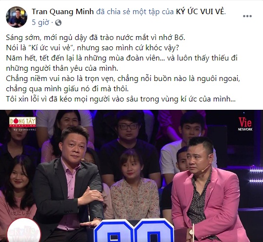 Sau khi những khoảnh khắc nghẹn ngào của mình lên sóng, BTV Quang Minh đã gửi lời xin lỗi đến tất cả khán giả trên trang cá nhân: "Nói là Kí Ức Vui Vẻ, nhưng sao mình cứ khóc vậy? Năm hết, Tết đến lại là những mùa đoàn viên... Và luôn thấy thiếu đi những người thân yêu của mình. Chẳng niềm vui nào là trọn vẹn, chẳng nỗi buồn nào là nguôi ngoai, chẳng qua mình giấu nó đi mà thôi.