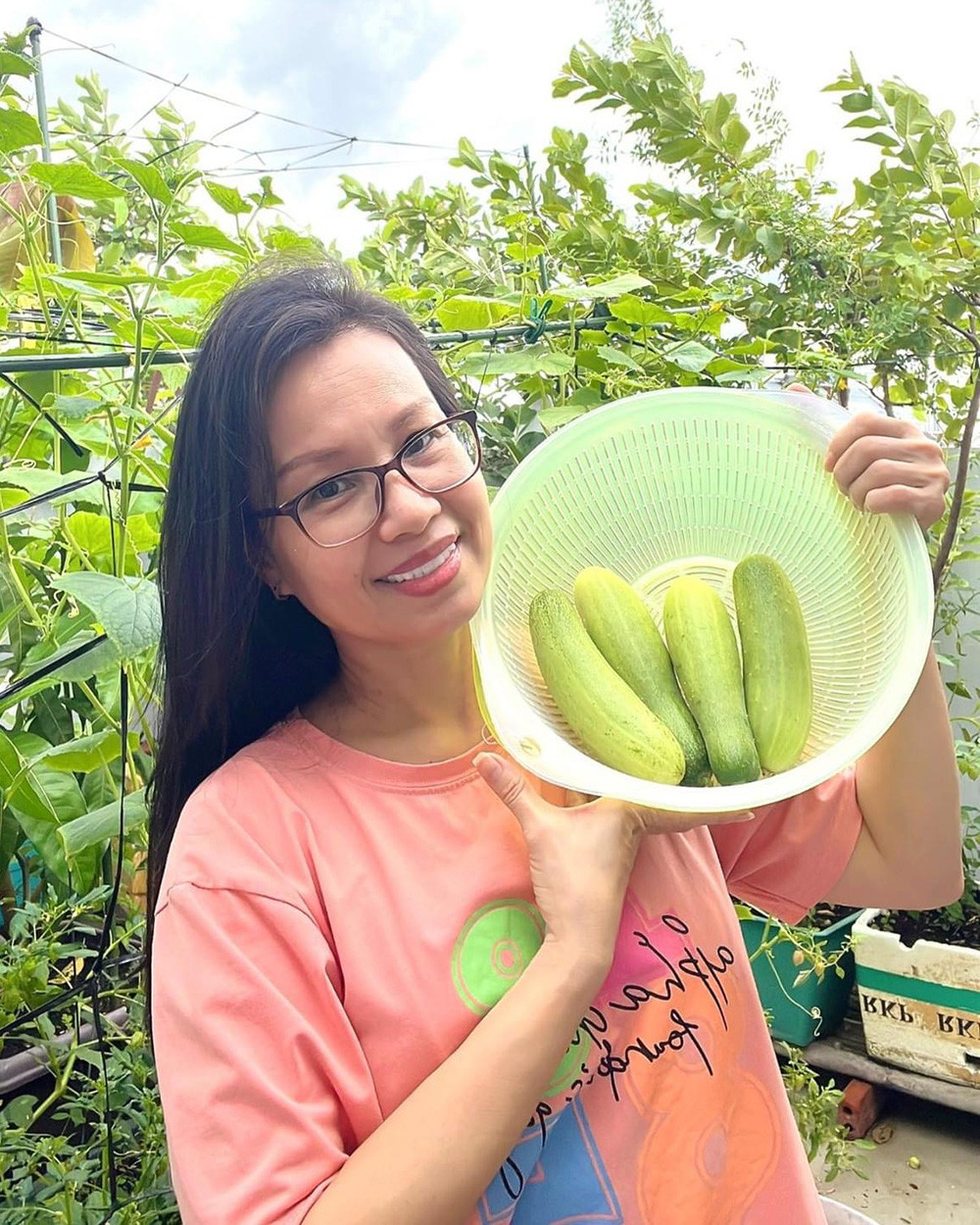 Cẩm Ly chia sẻ rằng dù đôi lúc sức khỏe không cho phép, cô vẫn chăm vườn rau để thư giãn tinh thần và tự tiếp thêm năng lượng.
