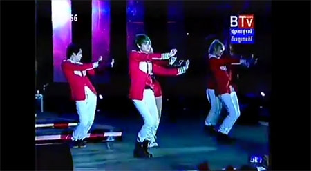 Ca sĩ Campuchia đạo beat và vũ đạo tiết mục của Tóc Tiên. |