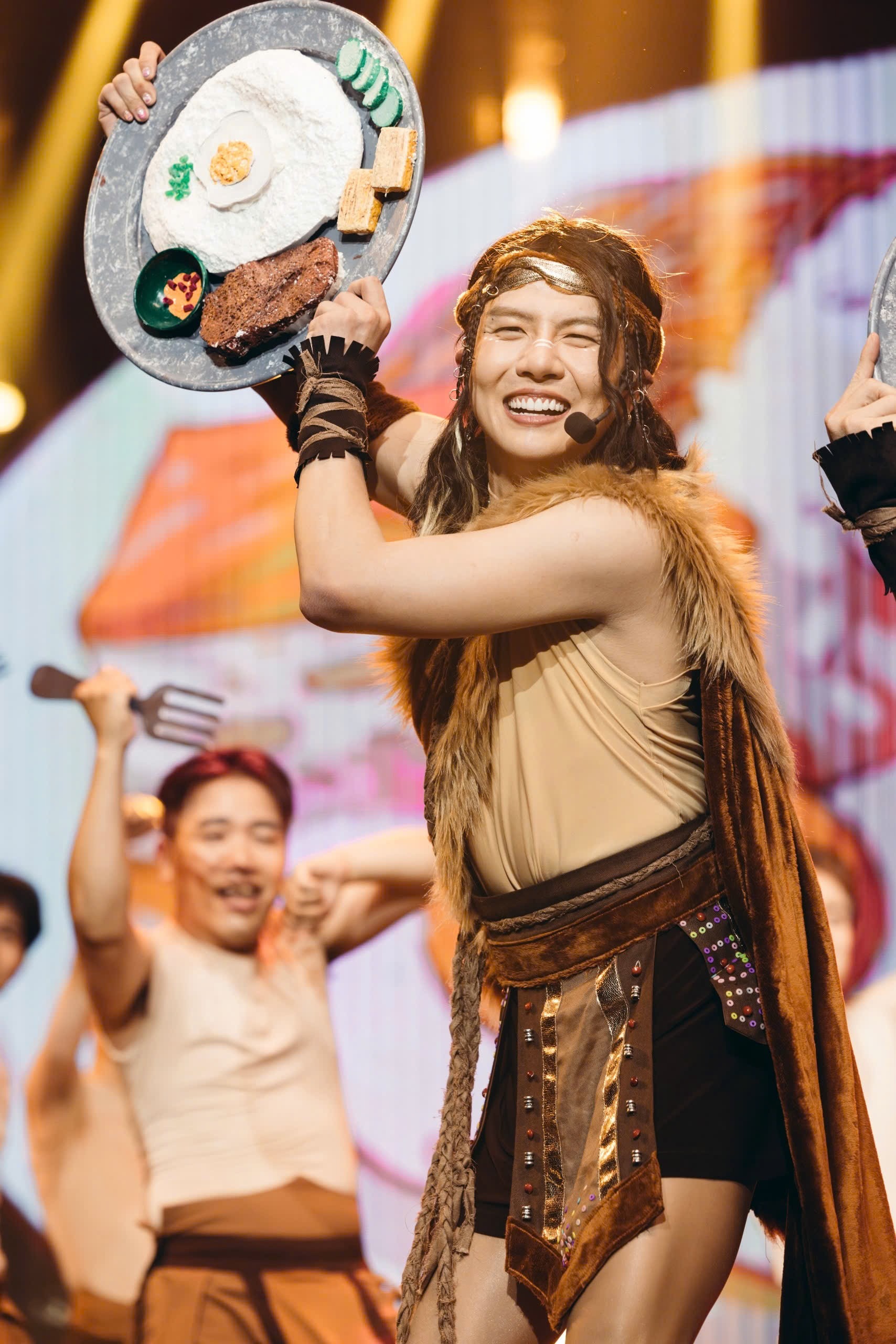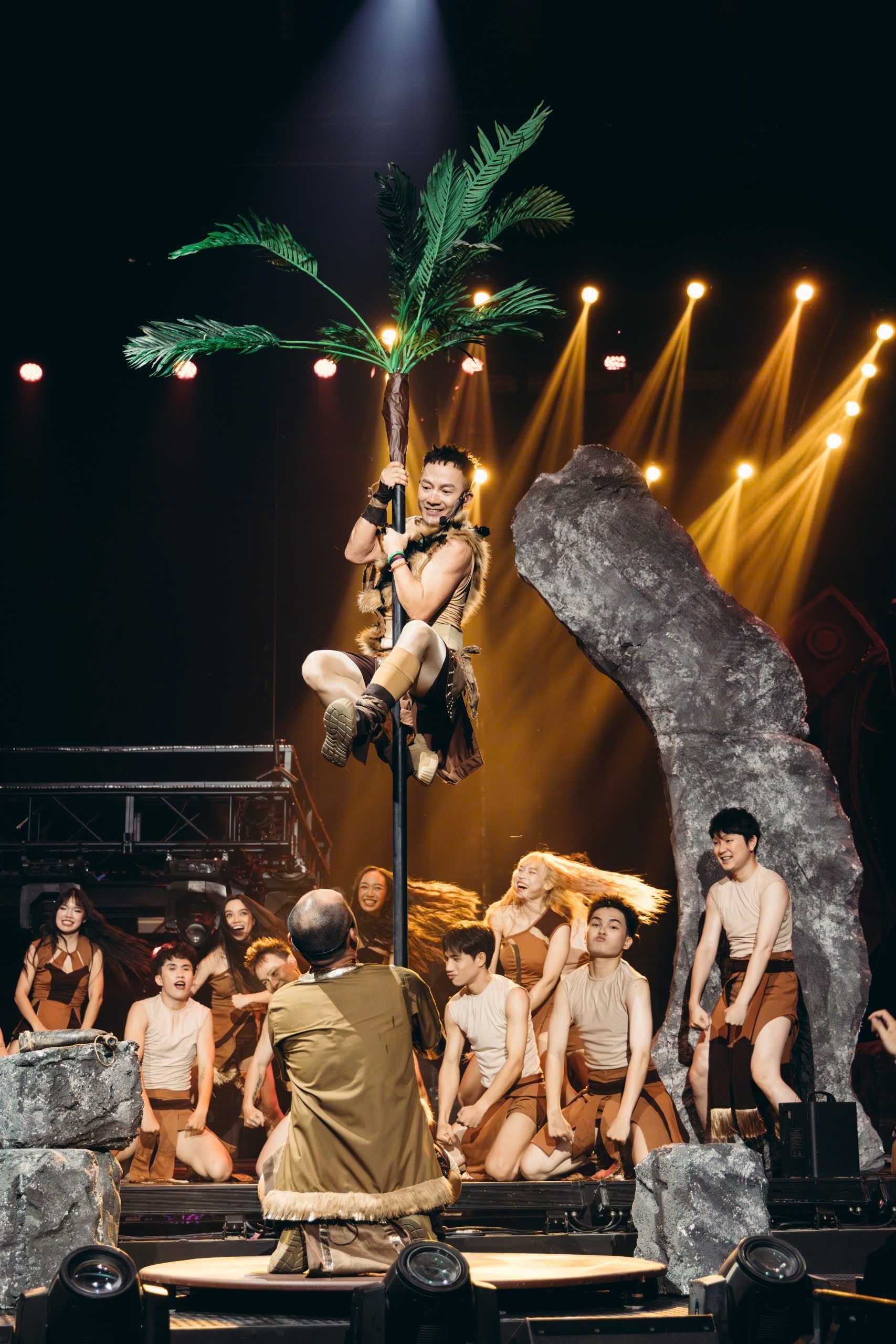Trong phần biểu diễn, các thành viên Nhà Thiếu Nhi hóa thành người tiền sử. Điều khiến khán giả bất ngờ nhất là màn múa cột của trưởng nhóm Tiến Đạt và Tiến Luật. Việc liên tục nhào lộn trên sân khấu là điều Tiến Đạt chưa từng làm ở show Anh trai.