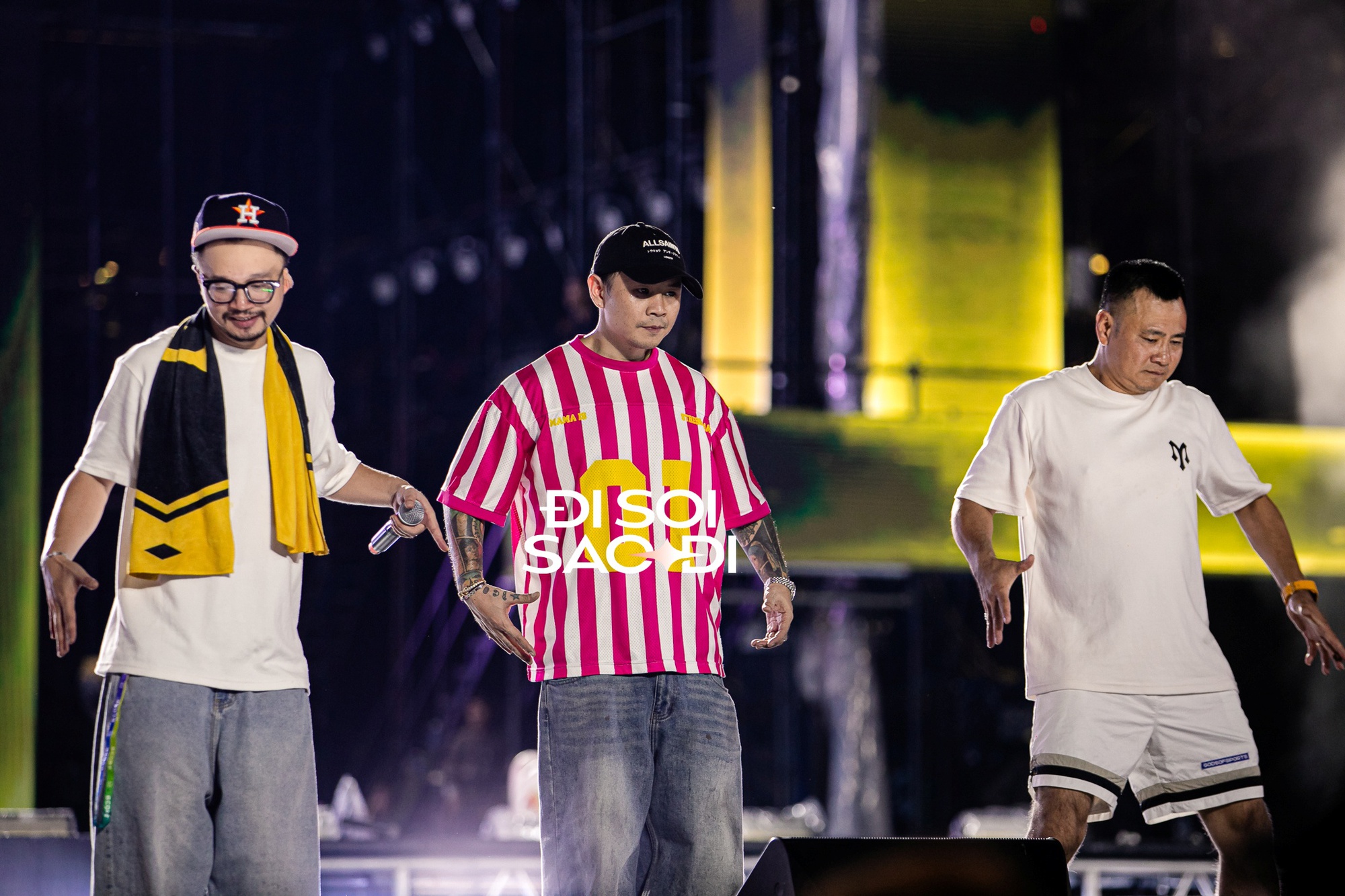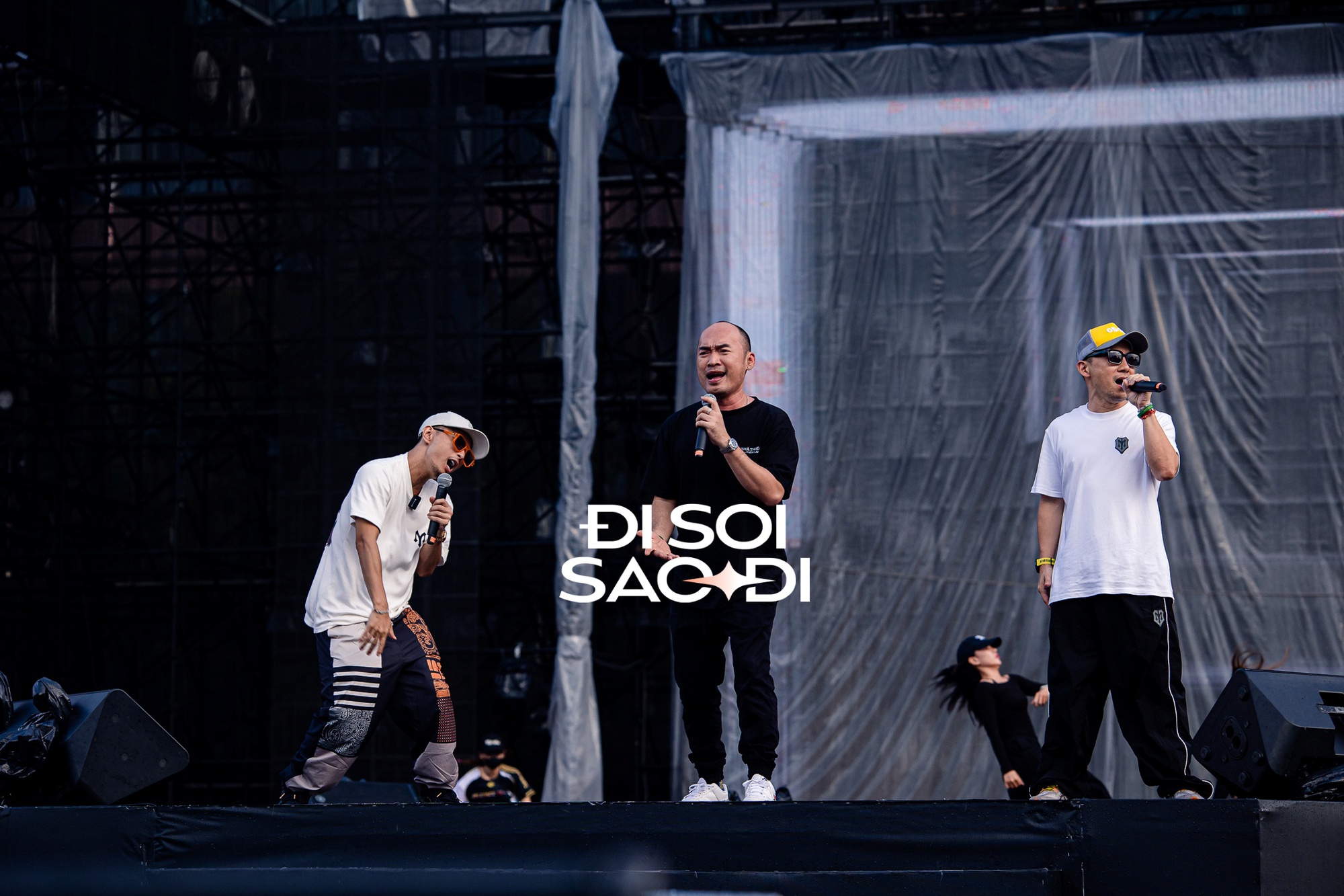 | Binz, Rhymastic di chuyển lên khu vực sân khấu sau lời nhắc nhở, yêu cầu tập hợp của đạo diễn Anh Trai Chông Gai |