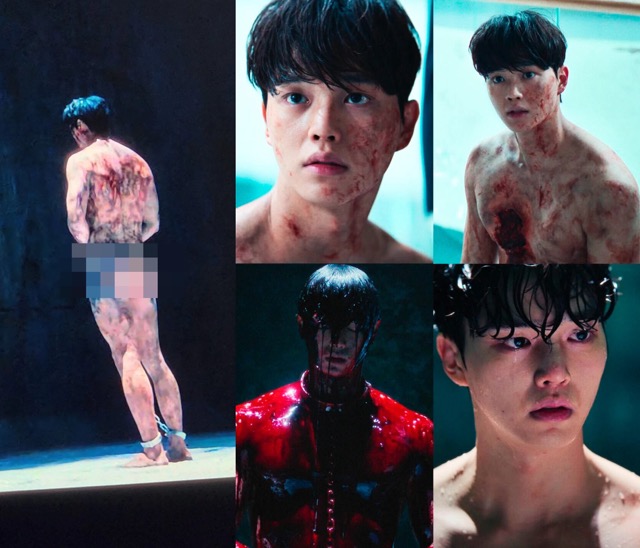 Hình ảnh Song Kang khỏa thân, người đầy máu và bị trói bằng dây xích trong cũi sắt ngay lập tức nhận sự chú ý của cư dân mạng.