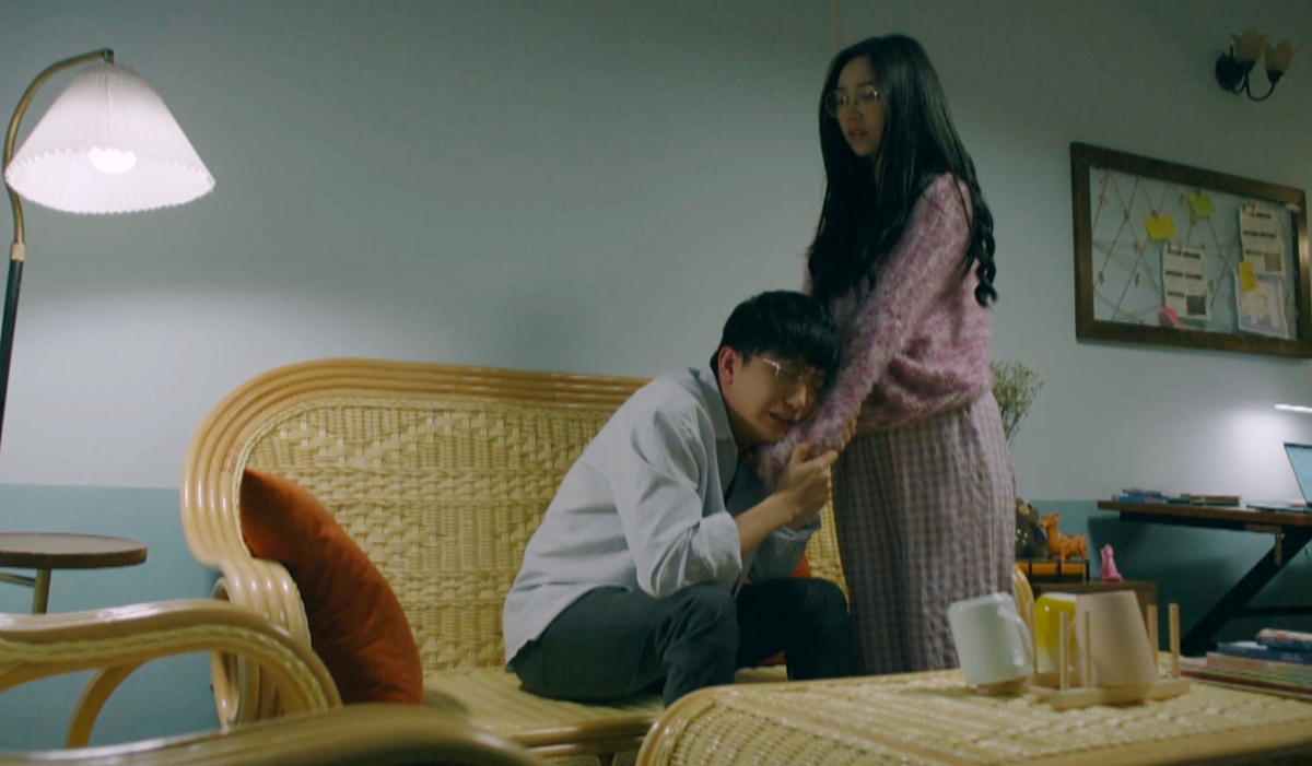 Thấy Tùng say kiếm cớ ngủ lại, Nguyệt nhất quyết gọi anh dậy đi về. Tùng nhân cơ hội nắm chặt tay Nguyệt, khóc lóc xin lỗi bày tỏ nhớ nhung. Tùng tiếp tục ôm lấy Nguyệt, cô bắt đầu dao động, không còn phản ứng mạnh mẽ hay ghê tởm Tùng như khi vừa phát hiện ra chồng ngoại tình. Thấy Nguyệt buông xuôi cho mình thể hiện tình cảm, Tùng chớp cô hội hôn vợ nhưng lần này bị cô dứt khoát đẩy ra.