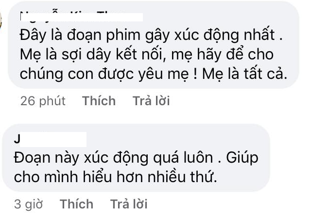 - Xúc động thật sự, xem xong đoạn đấy em quay sang ôm mẹ em luôn.