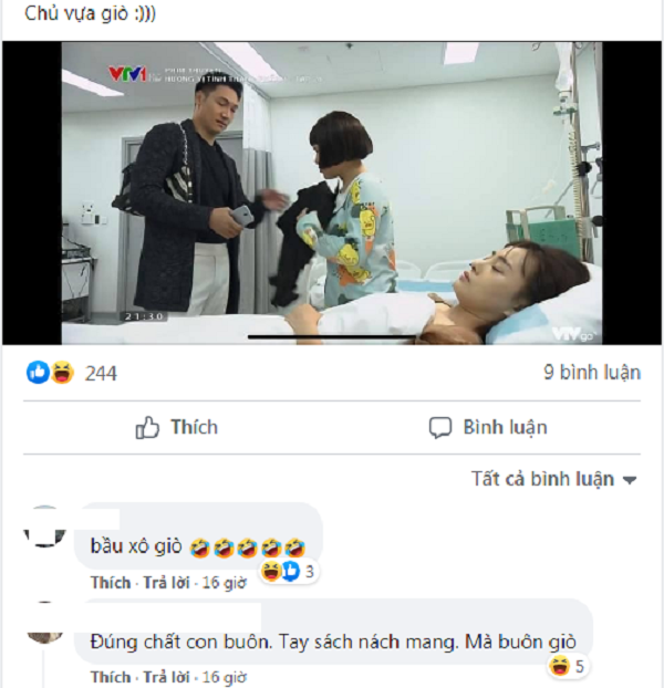 Có khán giả còn hài hước bình luận: 'Người đưa mình đi viện lại còn đeo túi xách của mình thế này chỉ có thể là chồng tương lai của mình!' - dựa theo câu nói kinh điển của Hoàng trong Hướng dương ngược nắng.