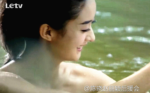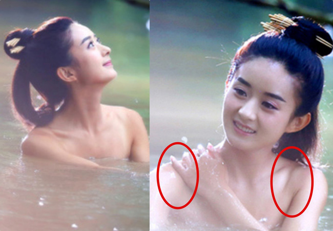Việc sử dụng áo bảo hộ trong trường hợp này cũng là điều dễ hiểu. Bởi khi quay cảnh khỏa thân tắm hồ, nếu không cẩn thận Triệu Lệ Dĩnh sẽ chịu thiệt thòi. Để bảo vệ nữ diễn viên, ekip sản xuất đã hóa trang khá kỹ lưỡng. Dẫu vậy, chỉ trong 1 khoảnh khắc thoáng qua, khi chiếc áo nhô lên, khán giả đã kịp soi ra dấu vết của vật bảo hộ này.
