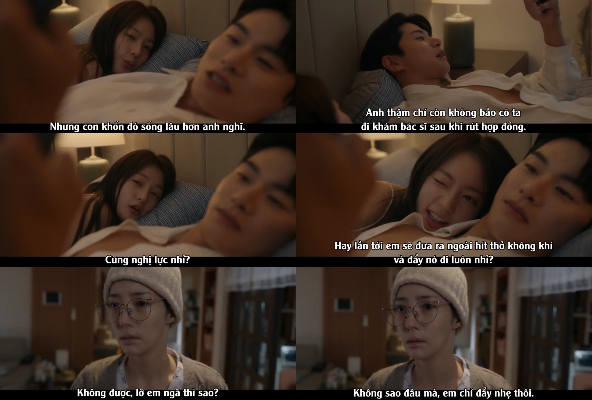 Đáng nói hơn, những lời thoại mà hai kẻ này thốt ra cực kỳ độc ác. Chúng hả hê vì sắp lấy được khoản tiền bảo hiểm kếch xù sau khi Kang Ji Won mất. Jung Soo Min gợi ý rằng cô ta sẽ nhân lúc đưa Kang Ji Won ra ngoài hít thở không khí để sát hại cô. Còn về gã chồng độc ác Park Min Hwan, tất cả những gì hắn ta lo sợ chỉ là việc lỡ nhân tình bị ngã.