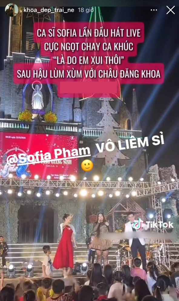 Theo đó, sau khi đoạn clip được chia sẻ trên MXH, Châu Đăng Khoa đã đăng tải story, “tag” tên Sofia và đính kèm dòng chữ “Vô liêm sỉ”. Động thái này khiến cộng đồng mạng không khỏi xôn xao sau ồn ào đấu tố giữa Châu Đăng Khoa và Sofia cách đây không lâu.