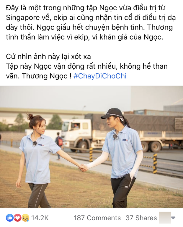 Ngay sau đó, dòng chia sẻ của quản lý Lan Ngọc trên Facebook cá nhân chiều ngày 5/11 càng khiến cho nhiều khán giả ngỡ ngàng, cảm thương vì sự can đảm, không bao giờ thể hiện sự mệt mỏi của cô trên bất cứ một gameshow truyền hình nào.