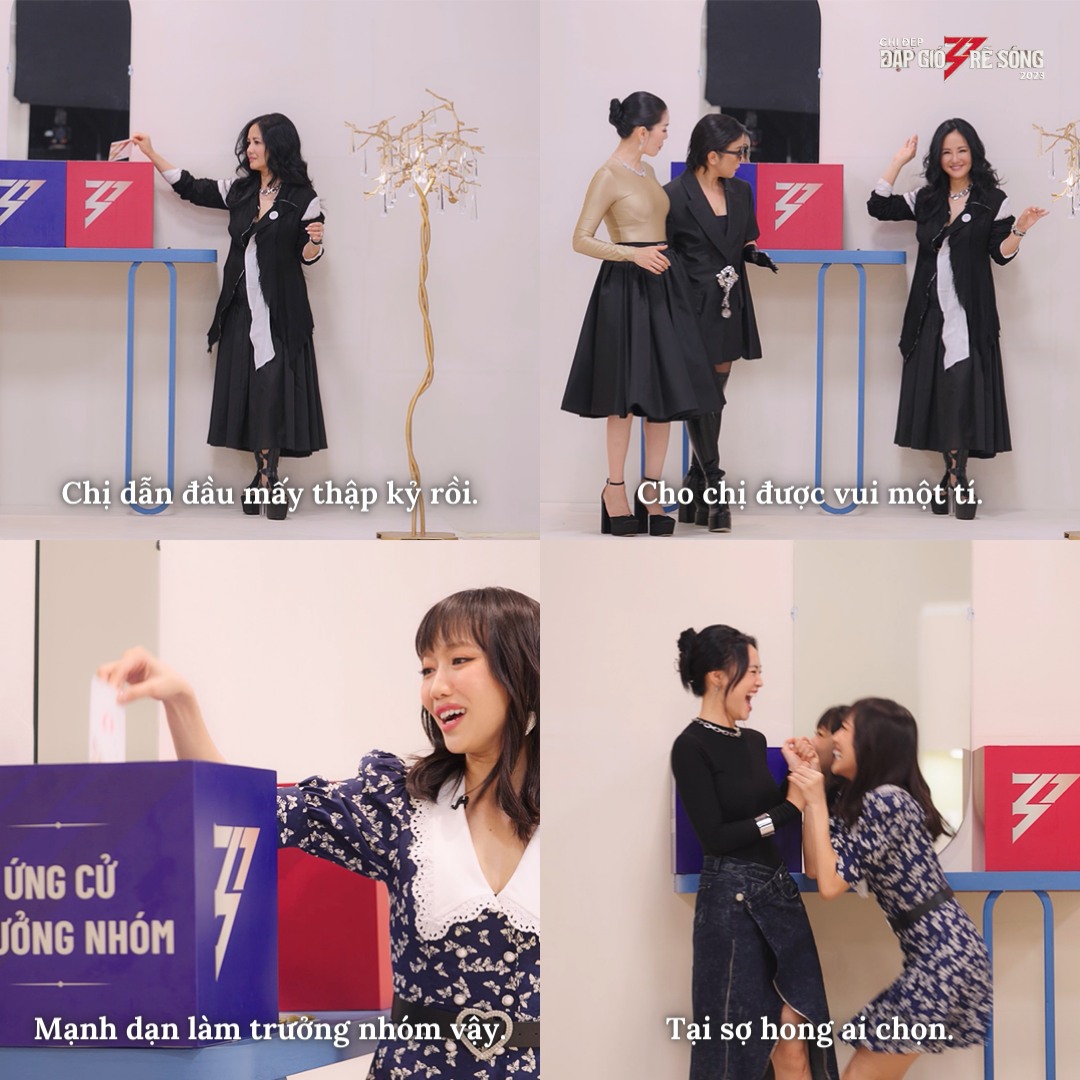 Còn Hồng Nhung thì cho hay: "Em ơi, chị dẫn đầu mấy thập kỷ rồi. Đến chương trình này, cho chị vui một tí. Vì làm trưởng nhóm nhiều việc hơn, trách nhiệm hơn, đúng đắn hơn nên thôi".