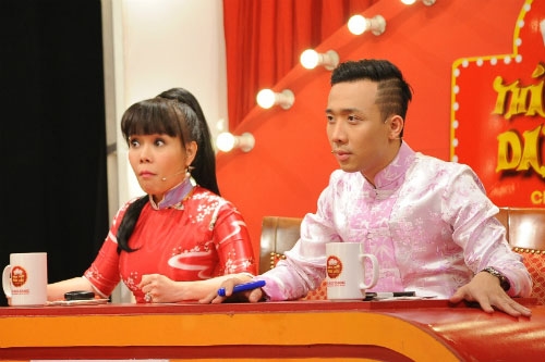 Giám khảo Việt Hương và Trấn Thành khá căng thẳng trước phần thi của nữ thí sinh. |