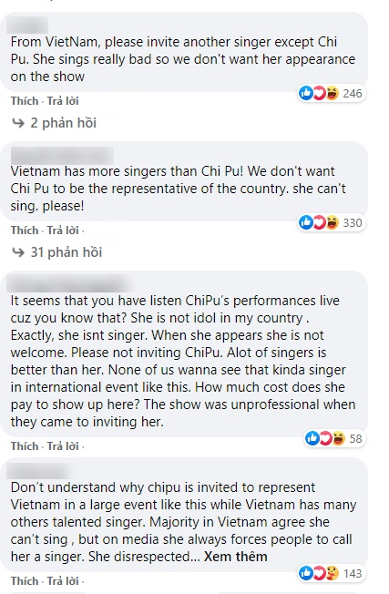 Trên fanpage của chương trình, cư dân mạng Việt Nam đã đồng loạt tấn công, yêu cầu chương trình gỡ bỏ tên Chi Pu ra và thay thế bằng một nghệ sĩ tài năng khác của Việt Nam. Làn sóng tẩy chay còn dữ dội hơn khi nhiều người còn tuyên bố sẽ không xem chương trình, lượng phẫn nộ lấn át cả lượng like, và lượng bình luận tẩy chay cũng "phủ sóng" khắp bài viết.