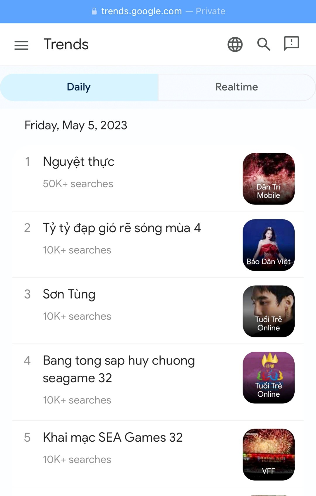 Tại Việt Nam, 'Tỷ tỷ đạp gió rẽ sóng mùa 4' là từ khóa được tìm kiếm nhiều thứ 2 trên Google ngày 5/5/2023 với hơn 10,000 lượt tra cứu thông tin về show giải trí có Chi Pu đang được quan tâm.