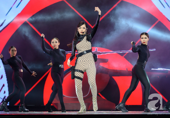 Trong đêm nhạc, Chi Pu cũng là cái tên nhận được sự chú ý đặc biệt của khán giả, bởi mỗi lần xuất hiện, giọng ca sinh năm 1993 đều khiến người xem phải trầm trồ với những màn biến hóa vô cùng đa dạng. Không làm người hâm mộ thất vọng, Chi Pu đã "chơi lớn" khi thể hiện màn lái trực thăng lên sân khấu khiến khán giả có mặt ở Nhà hát Hòa Bình đều phải trầm trồ, ngưỡng mộ.