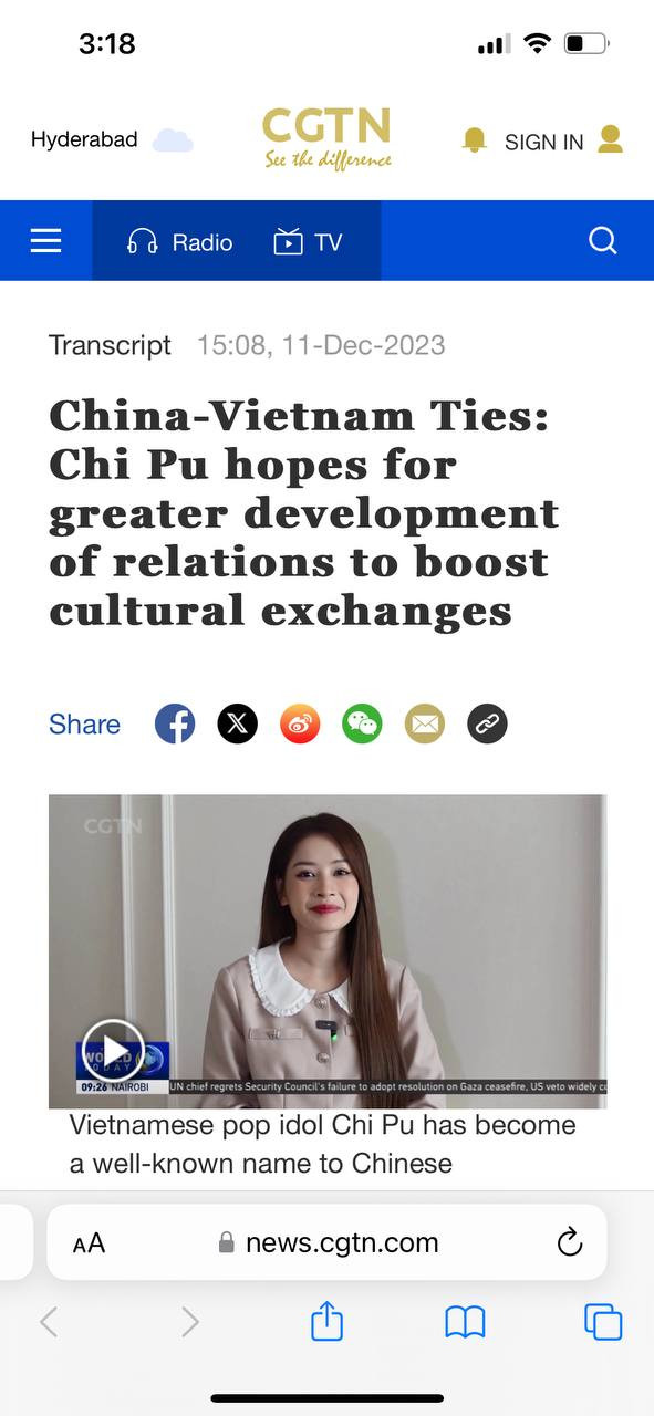 Trả lời CGTN về sự yêu thích của khán giả Việt Nam với phim ảnh và âm nhạc Trung Quốc, Chi Pu cho biết: “Nhiều khán giả Việt Nam thuộc thế hệ cha mẹ tôi đã yêu thích các diễn viên, ca sĩ Trung Quốc thông qua những bộ phim truyền hình, ca khúc nổi tiếng.