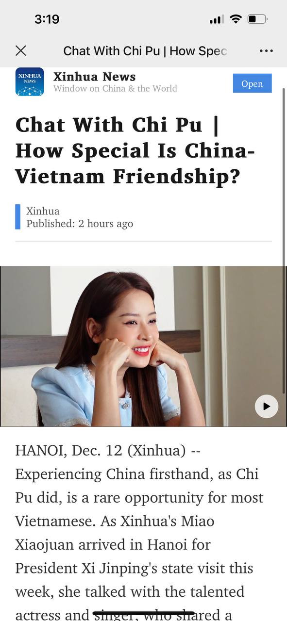 Chi Pu vừa thực hiện cuộc trả lời phỏng vấn với Tân Hoa Xã và CGTN (Đài truyền hình Trung ương Trung Quốc).