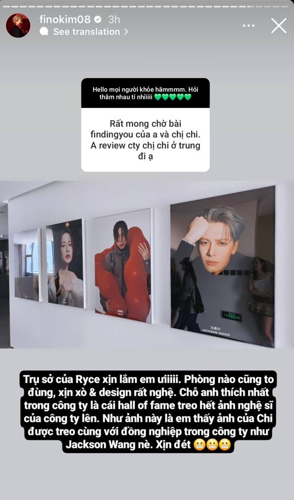 Hứa Kim Tuyền cũng từng hé lộ về trụ sở công ty quản lý Chi Pu tại Trung Quốc. Nam nhạc sĩ chia sẻ trong một story Instagram hình ảnh Chi Pu được treo cạnh những cái tên đình đám xứ Trung thuộc Ryce Entertainment. Gia nhập công ty mới, Chi Pu "về chung nhà" với những ngôi sao âm nhạc đình đám châu Á như Jackson Wang (GOT7), Amber Liu, Tablo (Epik High),...
