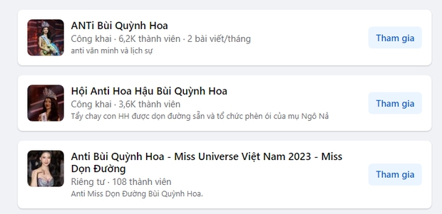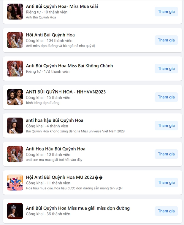 01/10/2023 01:58Chỉ sau 1 đêm đăng quang Miss Universe Vietnam, Bùi Quỳnh Hoa bị lập hàng chục nhóm anti vì nghi vấn mua giải