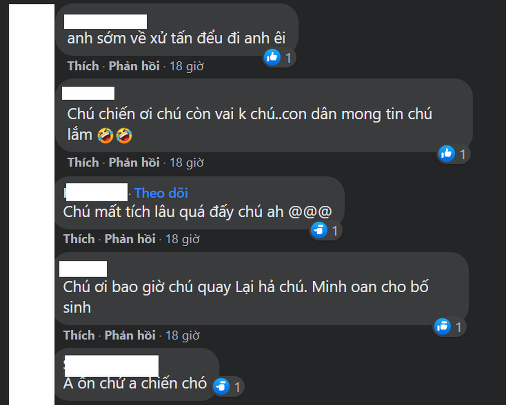 Trước chia sẻ của Anh Tuấn, khán giả hâm mộ phim Hương vị tình thân đồng loạt để lại bình luận bày tỏ mong muốn sự xuất hiện trở lại của Chiến Chó: "Anh trở lại sớm đi cho anh Sinh lấy lại công bằng anh ơi", "Anh sớm về xử Tấn đểu đi anh", "Chú Chiến ơi chú còn vai không chú. Con dân mong tin chú lắm"...
