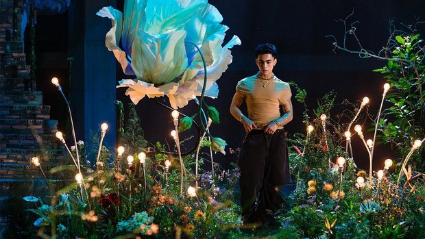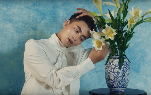 Đặc biệt, một số cảnh quay cho thấy hình ảnh Mono khá dịu dàng và có phần nữ tính. Đơn cử như khi anh khẽ tựa đầu lên tay hay thể hiện ánh mắt mơ màng, điệu đà. Nổi bật vẫn là phân đoạn Mono biến mình trở thành thiếu nữ bên hoa huệ, môi tô son, tai đeo khuyên và ngồi nghiêng đầu như bức tranh nổi tiếng.