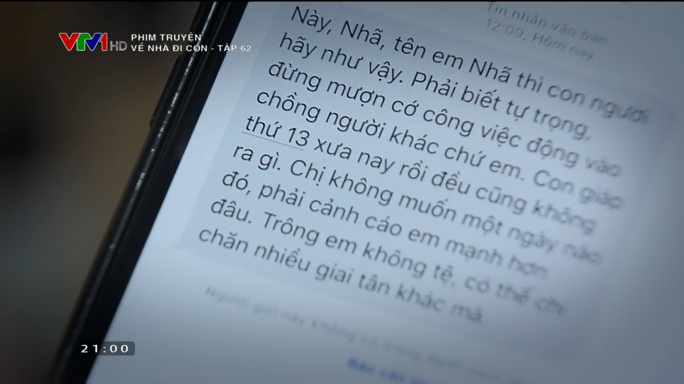 Tới khi Thư gọi điện định kể sự thật cho Vũ biết thì anh chỉ cho rằng cô đang tiếp tục diễn kịch, bao biện cho sai lầm của mình. Lời giải thích chưa thoát ra khỏi miệng vì nghe thấy tiếng Nhã (Quỳnh Nga) vang lên từ trong điện thoại của chồng mà tắt lịm.