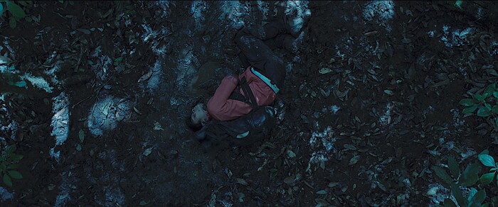 Ngoài ra, cảnh một người bí ẩn gieo mình tự tử, bị vật nhọn đâm vào mắt cùng những tiếng vang vọng bí ẩn trong rừng. Đây có lẽ là lời tuyên bố ngầm rằng Rừng thế mạng không chỉ là một phim sinh tồn đơn thuần mà còn chứa nhiều chất liệu tâm linh, kinh dị, tâm lý giật gân.