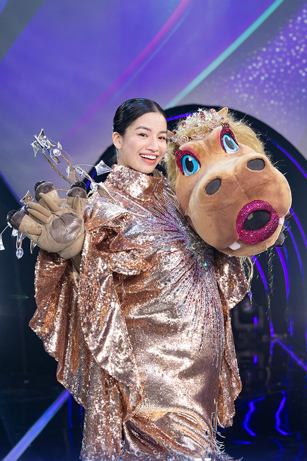 Dù vậy, với lượt bình chọn thấp, HippoHappy phải chia tay chương trình, tháo mặt nạ lộ diện. Đúng như dự đoán của nhiều khán giả, HippoHappy chính là Lâm Bảo Ngọc. Trước đó, nữ ca sĩ được biết đến khi là Á quân Sao mai 2017, Á quân The Voice 2019 với phong cách âm nhạc nhẹ nhàng. Tóc Tiên là cố vấn duy nhất đoán đúng mascot HippoHappy là Lâm Bảo Ngọc.